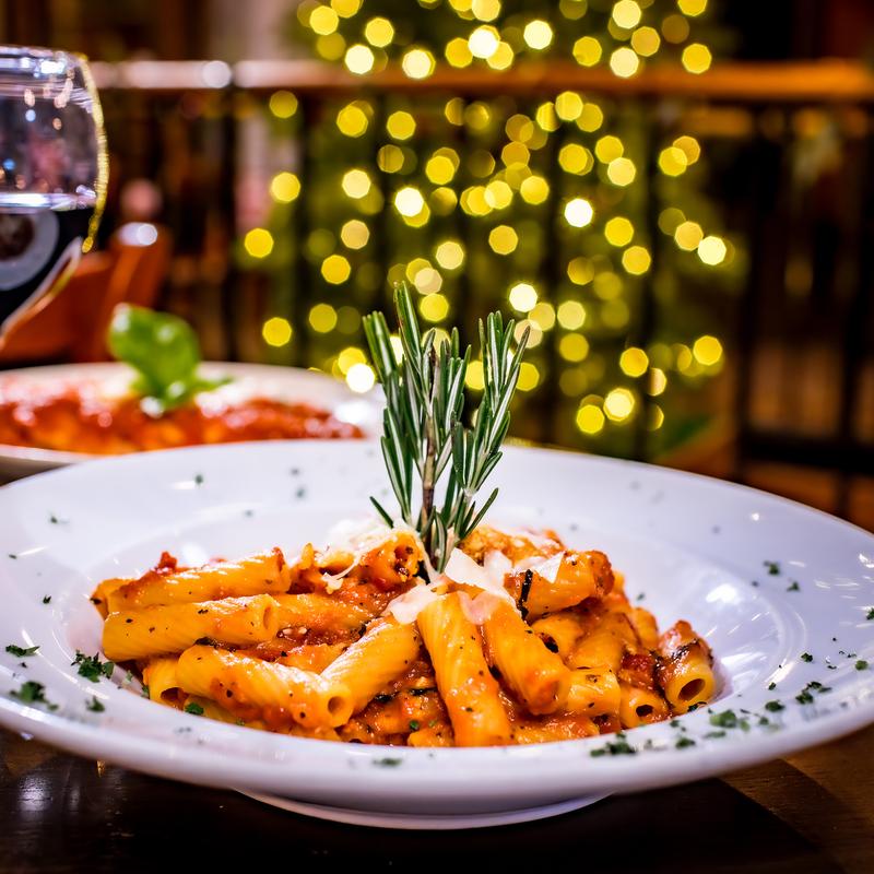 Penne with grilled chicken in a pink sauce with a hint of vodka